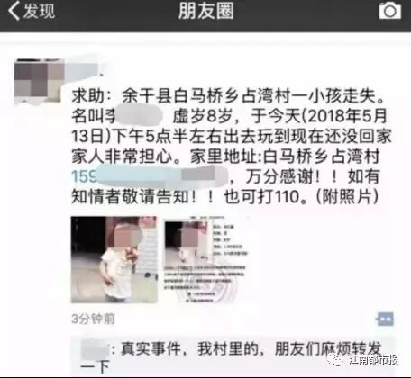 余干县白马桥乡一男孩失踪的消息by3安徽网库 地方门户新闻站