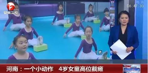 近些年,或因为舞蹈培训机构的不科学训练方式,或因为孩子伤情处理不及时,又或者因为家长对孩子的意外扭伤不够重视,最终造成意外的事件不断发生。