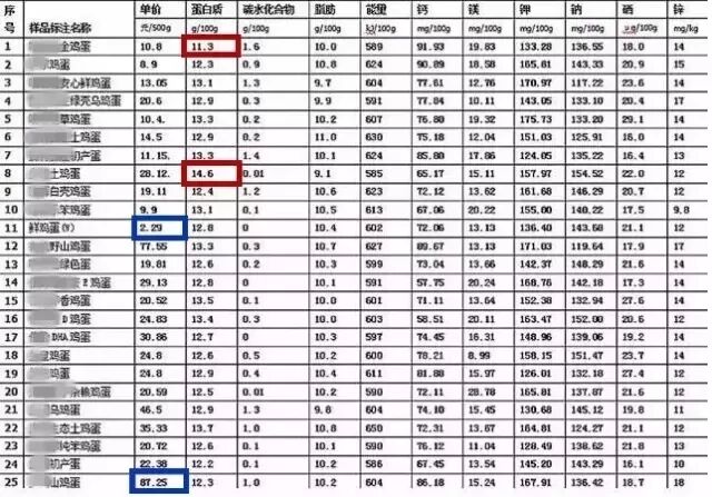 普通鸡蛋、笨鸡蛋、土鸡蛋太常见 初产蛋、农家蛋、有机野山鸡蛋…… 端午节近在眼前 面对琳琅满目的鸡蛋产品 你想好选哪种了吗? 近日,沈阳市消费者协会对沈阳几家大型超市销售的25款鸡蛋样品进行了比较试验。选取的鸡蛋样本平均价格每500克从2.29元到87.25元不等,包括普通鸡蛋、笨鸡蛋、土鸡蛋、乌鸡蛋、山鸡蛋、初产蛋、绿色鸡蛋、农家鸡蛋、特殊营养成分鸡蛋、有机野山鸡蛋等共计25款样品。 结果显示,所有安全指标全部符合国家标准,相关营养指标差距不大。 啥意思? 2块多钱一斤的鸡蛋和80多一斤的鸡蛋, 营养价值是差不多的。 请问这些年你花了多少冤枉钱? 25款鸡蛋营养成分含量略有差异, 蛋白质最高含量为14.6g/100g, 最低为11.3.g/100g, 相差3.3g/100g; 令人震惊的是—— 87.25元/斤的山鸡蛋 竟不及2.29元/斤的普通鲜鸡蛋的蛋白质含量 从比较试验结果看, 价格相对较高的鸡蛋, 其营养指标并非最高, 而每500克价格2.29元的普通鸡蛋营养指标也不低。 鸡蛋也有保质期 沈阳市消费者协会提醒市民,鸡蛋的保质期受气温、湿度的影响较大。通常来说: 温度在2-5℃时,鸡蛋的保质期为40-60天; 在15℃以下,保质期为30天左右; 当夏季温度高于25℃时,鲜鸡蛋保质期为7-10天。 保存鸡蛋的小窍门 1 正确地放在冰箱里储存 鸡蛋正确的存放方法是,放的时候要大头朝上、小头在下。这样可使蛋黄上浮后贴在气室下面,既可防止微生物侵入蛋黄,也有利于保证蛋品质量。 2 鸡蛋忌与挥发性物质同装运 葱、姜、辣椒等挥发性物质的强烈气味,会通过蛋壳上的气孔渗入鸡蛋中,加速鸡蛋变质。 3 从冰箱中取出的鲜蛋要尽快食用,不可再久置或再次冷藏 鸡蛋取出后在室温下会“发汗”,小水滴中的细菌和微生物会很快透过蛋壳深入蛋液内层,所以鸡蛋已不能保质,要马上食用。 4 鸡蛋存放前不可用水冲洗 有些鸡蛋的外壳很脏,人们喜欢清洗后再存放,以免污染其他食品。 但清洗会破坏鸡蛋原有的外蛋壳膜,使细菌和微生物畅通进入蛋内,加速鸡蛋变质。可以用保鲜袋或膜包起来再放,就不会造成污染了。 5 有独立的存放空间 在没有条件冷藏鸡蛋的时候,要尽量用干净的纸或布做成鸡蛋形状的空穴,使每个鸡蛋有独立的存放空间,并且避免直接暴露在空气里。