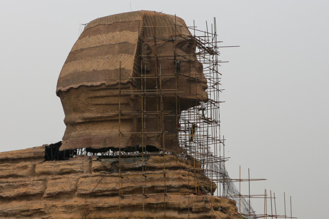 据悉,这不是普通的山寨“狮身人面像”,他的肚子里藏着“皇宫”,不知“整容”后的“狮身人面像”是否会恢复当初的内部宫殿。